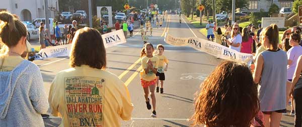 In the Baptist one-mile “Kids Get Healthy” race, Lily Kate Johnson, age 11, from New Albany, finished first with a time of 6:38. She was just 32 seconds behind the top male, Jaxon Herod, age 10, from Etta, MS, who finished the mile in 6:06.