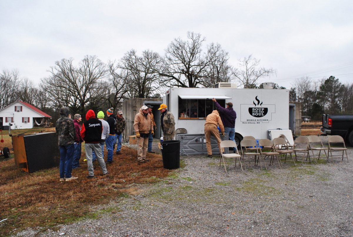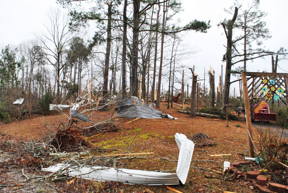 Volunteers from the community and from the Union County Baptist Association were putting tarps on damaged roofs and helping with cleanup. Harmony Baptist Pastor Gary Yates and church members also set up their Soup for the Soul mobile food kitchen at the Alpine Volunteer Fire Department to feed victims and volunteers. The fire department was serving as a command post.