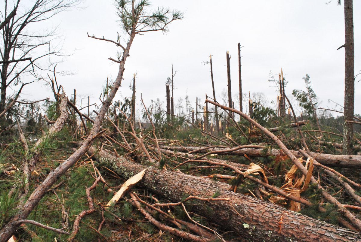 National Weather Service personnel would have to determine whether the damage was caused by a tornado or straight-line winds.