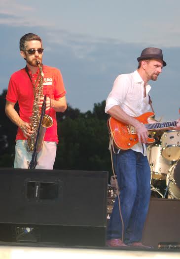 Andrew Yurkow’s Cadillac Funk returned to New Albany as the opening act of the Fifth Levitt AMP New Albany free concert. It was a hot night on a holiday weekend; the crowd, though modest in size, seemed to contain quite a few fans of this group. Indeed, they do “bring the funk” to the table.