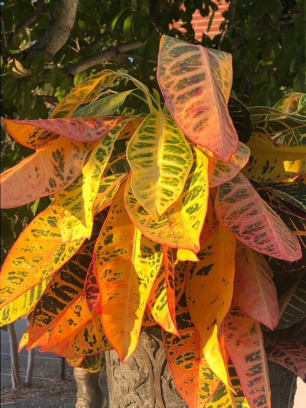 The patch of red leaves is probably no more than 25 square feet and always in the same spot on the tree: close to due south (170 degrees) from the midline of the main trunk.