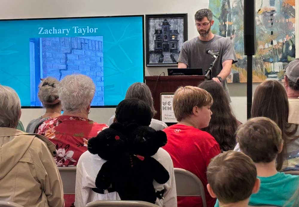 Paleontologist George Phillips gave a talk about recent fossil finds in Mississippi, with information on their general locations and their importance to further discerning the far, far past of Mississippi. His lecture pretty much centered on what he called “shallow geology,” which includes finds on or near Earth’s upper crust. There was a good bit of participation from the audience, many of whom answered questions with which Phillips challenged his listeners. Several members of the audience asked their own pertinent questions about the new finds or gave interesting comments. It seems that there are, indeed, many in the Union County area who are greatly interested in knowing more about the area’s geologic history, which can be learned via fossils both large and small.