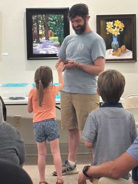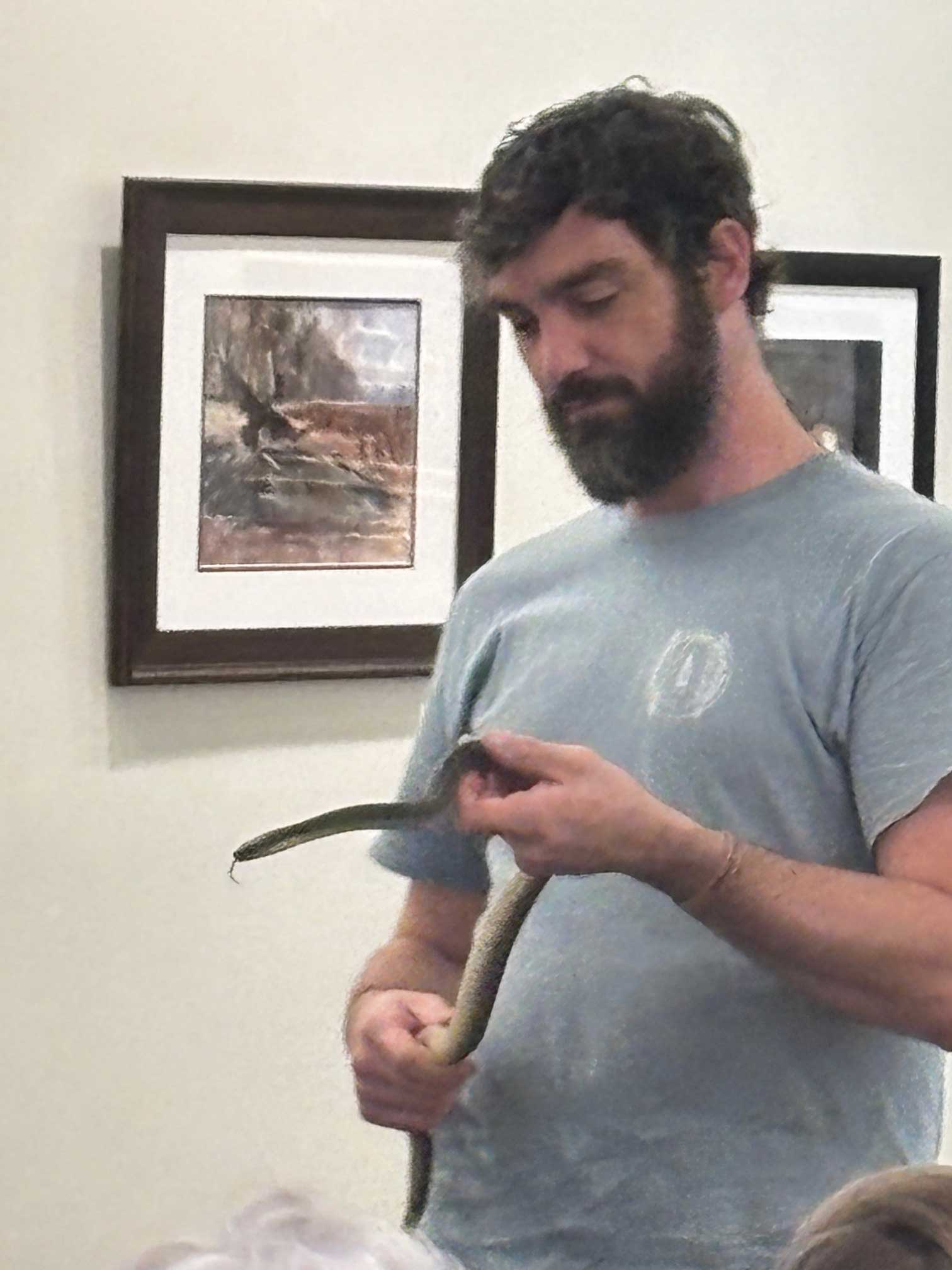 An additional focus for the Museum’s Fossil Roadshow this year was on Snakes of Mississippi. This was in recognition of the Year of the Snake on the Chinese Zodiac. Brad and Blake Pressley, who are avid artifact collectors, brought some of their live snakes and presented information on “good and bad” snakes of Mississippi. Part of their aim was to help separate “truth” from “fiction” regarding various myths and widely held beliefs and fears about snakes and their behavior. There was a ‘standing room only’ audience for this program. It was interesting to see how many of the audience members, especially the young ones, were excited to see and touch the Pressley’s live snakes.