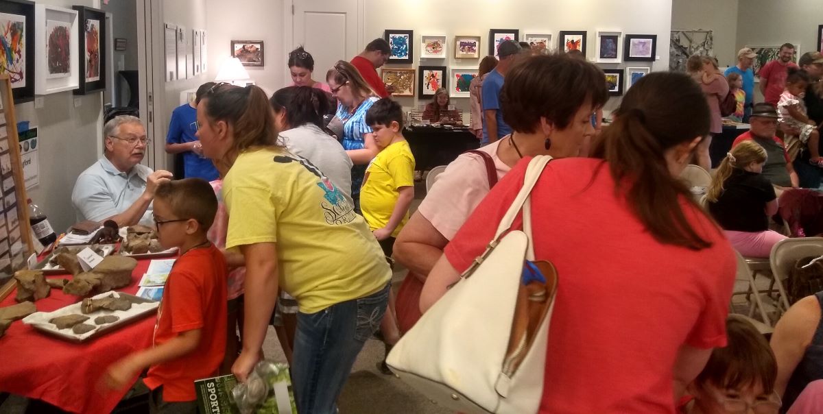 Yesterday’s Fossil Road Show at the Union County Heritage Museum had a fantastic turnout with an enthusiastic crowd of all ages. There was an especially strong contingent of young aspiring paleontologists and geologists. On display were wonderful fossil and mineral finds found in Mississippi, many in Northeast Mississippi, including bones from a plesiosaur found in Blue Springs. Other attractions included a rock-painting station and a booth with special lights to display the fluorescent properties of some minerals.
