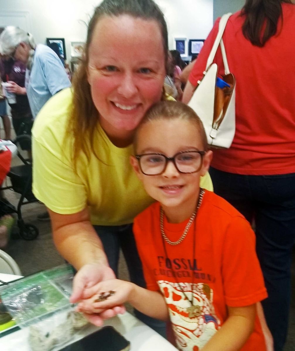 Experts from the Mississippi Museum of Natural Science (MMNS) in Jackson and the Mississippi Gem and Mineral Society were also on hand to identify local fossil finds brought in by visitors. Dozens of children and a good many adults came in to learn more about their treasures. One of these was young Mason Robinson who came in with some particularly good finds, including several sharks’ teeth. Mason also brought in a trilobite which was between 390-410 million years old.