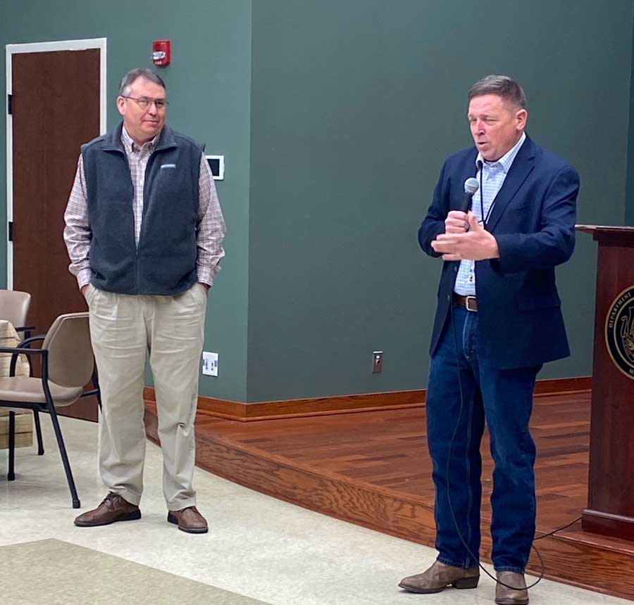 - Northern District Commissioner John Caldwell (right) spoke of this time working with Holley at MDOT.