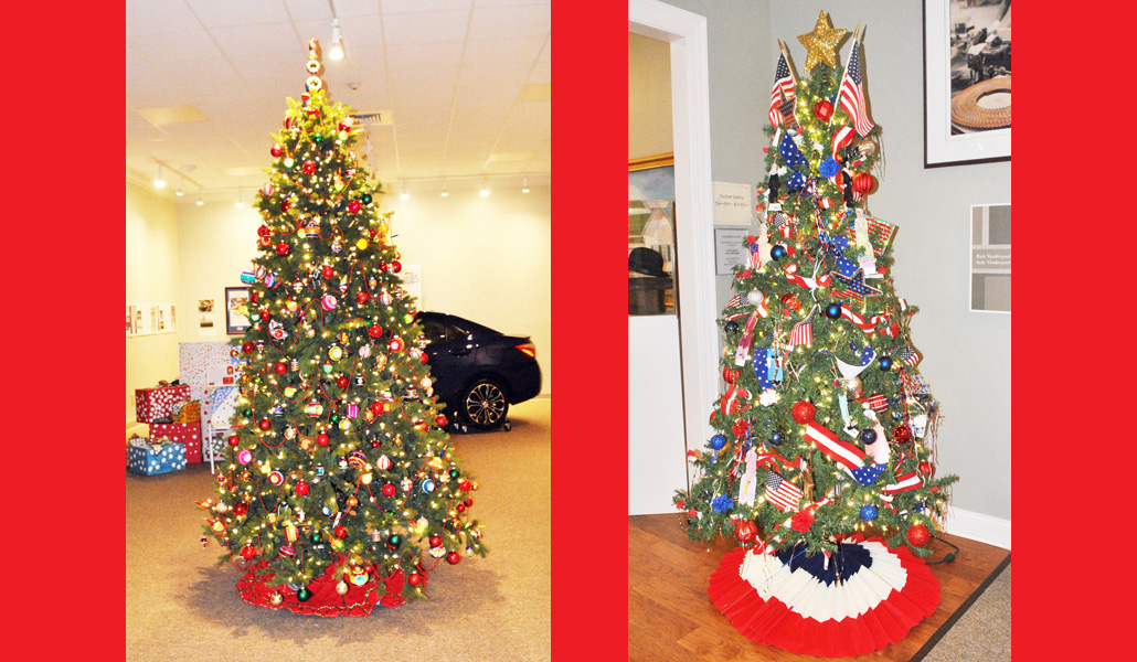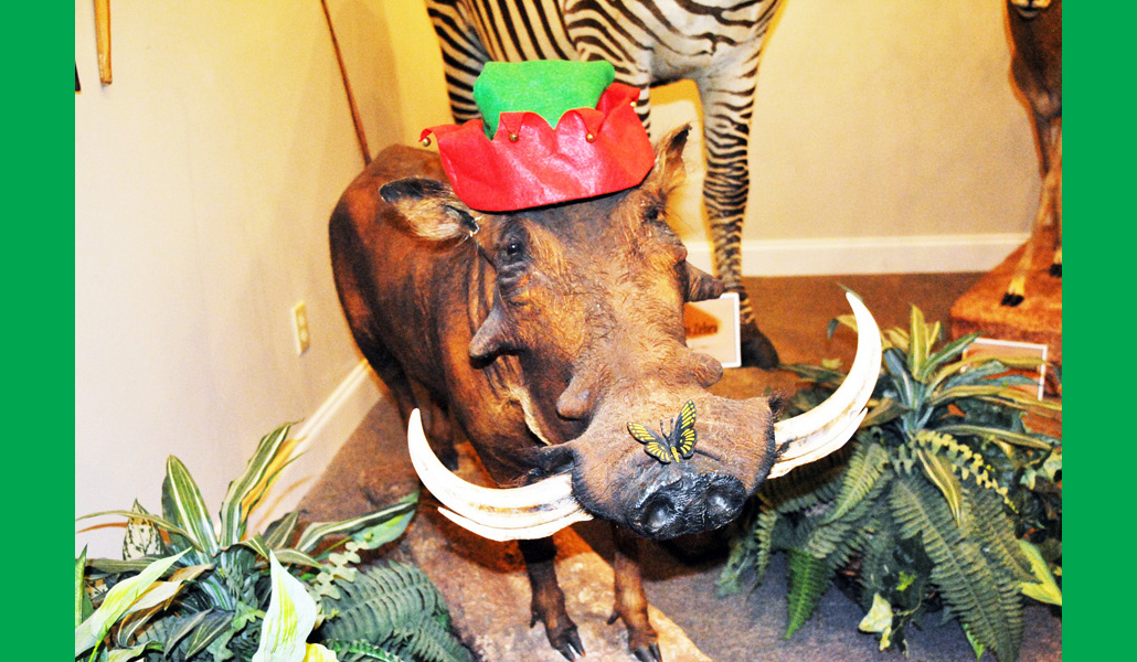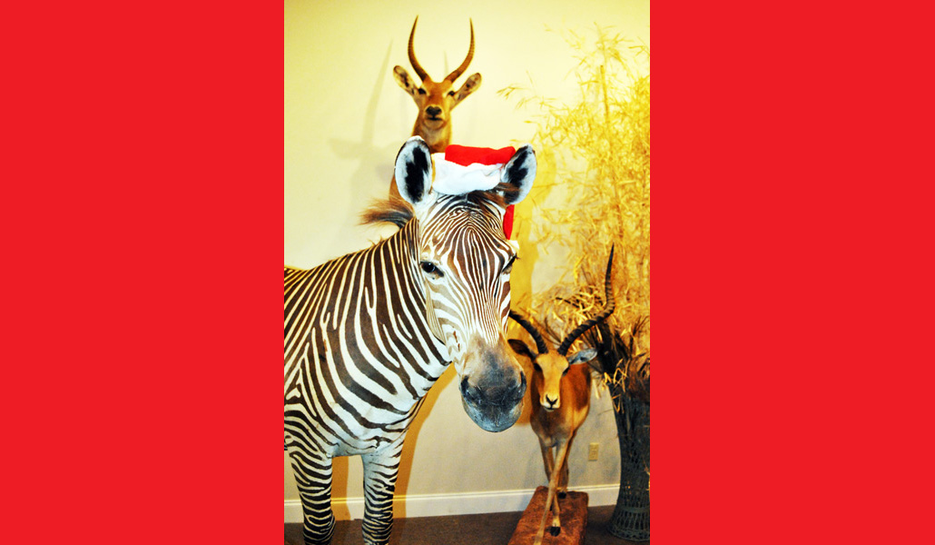 Attached are photos of some of the trees. Some of the animals are dressed for Christmas as well.
