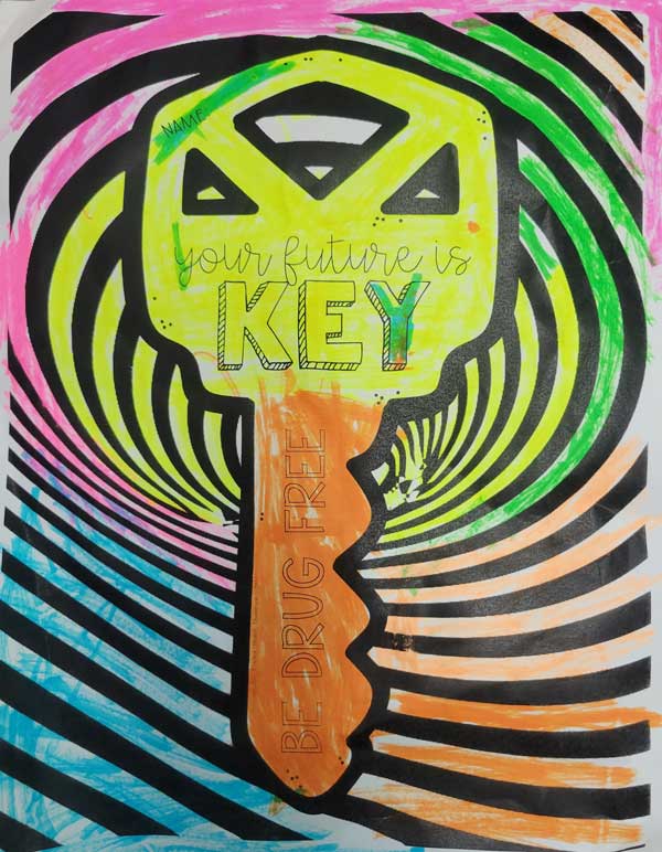 The topic was “Staying Drug Free”.  Students were given highlighters and allowed to color their worksheet under black lights.