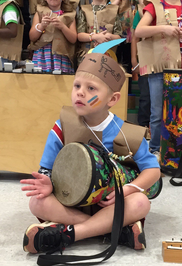 The students made shakers and drums, as well as their costumes, to use during the program.