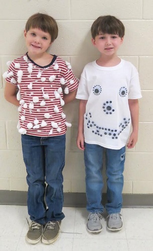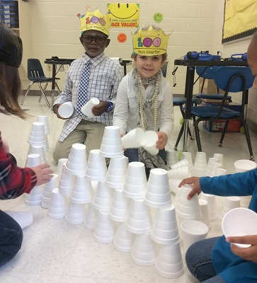 Students rotated through classrooms and participated in learning center activities related to the #100. These activities included exercises, puzzles, making crowns, building with cups, journal writing, and math activities. In addition, students dressed as if they were 100 Years Old or with shirts that contained 100 items.