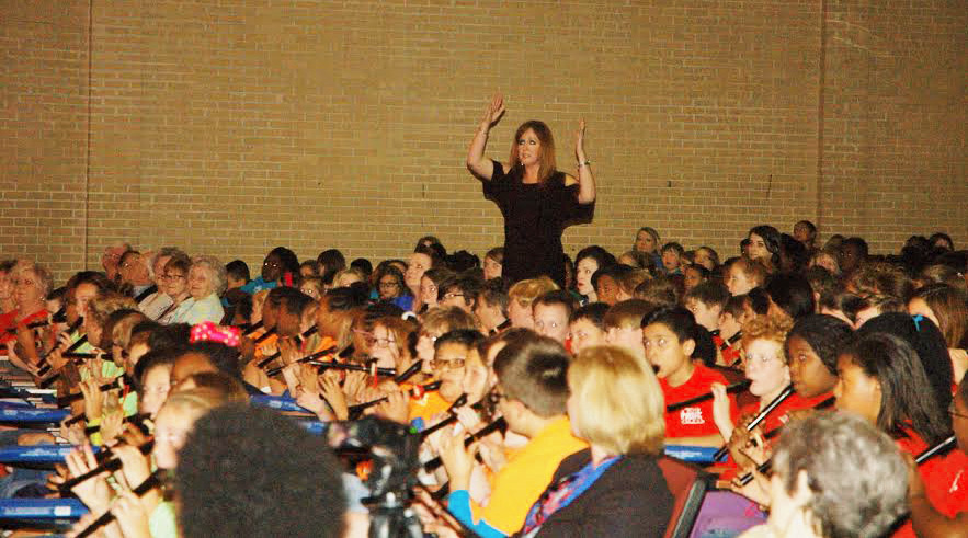 Lynn Mize, a music teacher in the Tupelo Public Schools and director of the Link Up program for the Tupelo symphony organization, was one of three conductors working simultaneously with about 800 musicians.