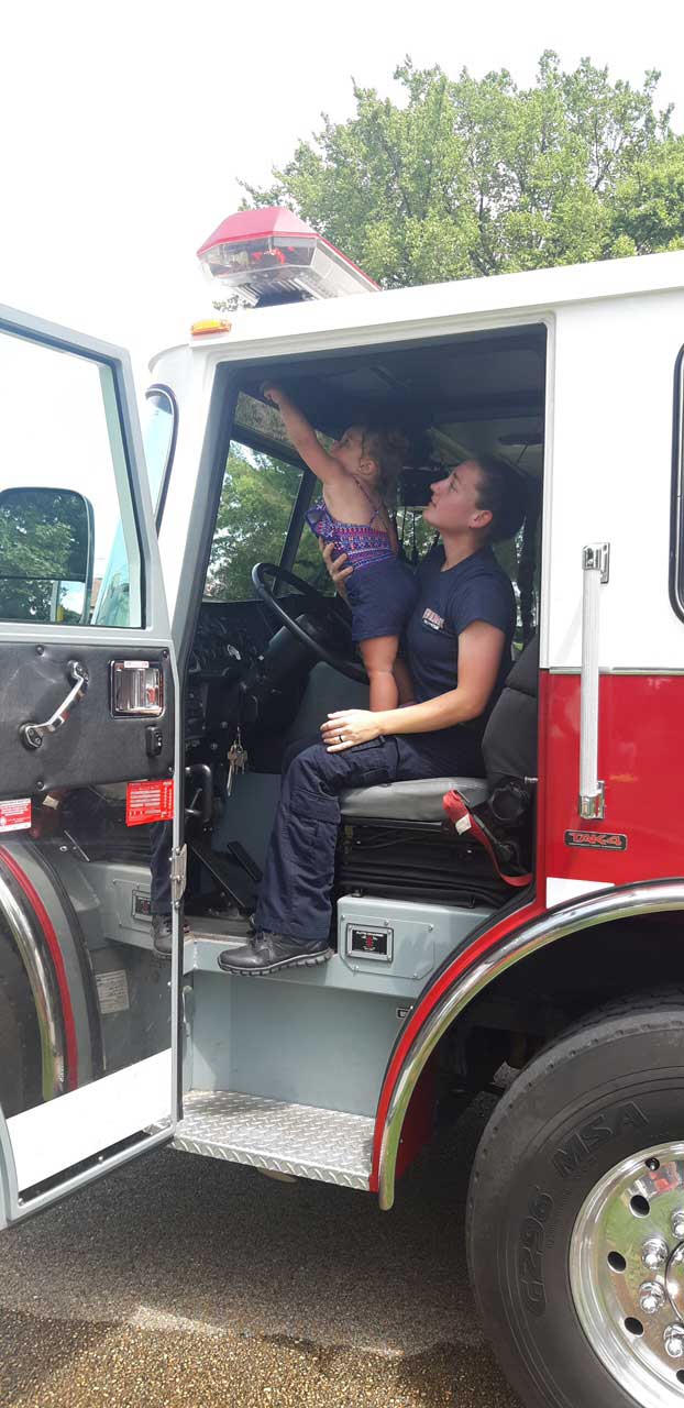 Children were allowed to inspect the fire fighting equipment and ask questions as they talked with fire fighters.