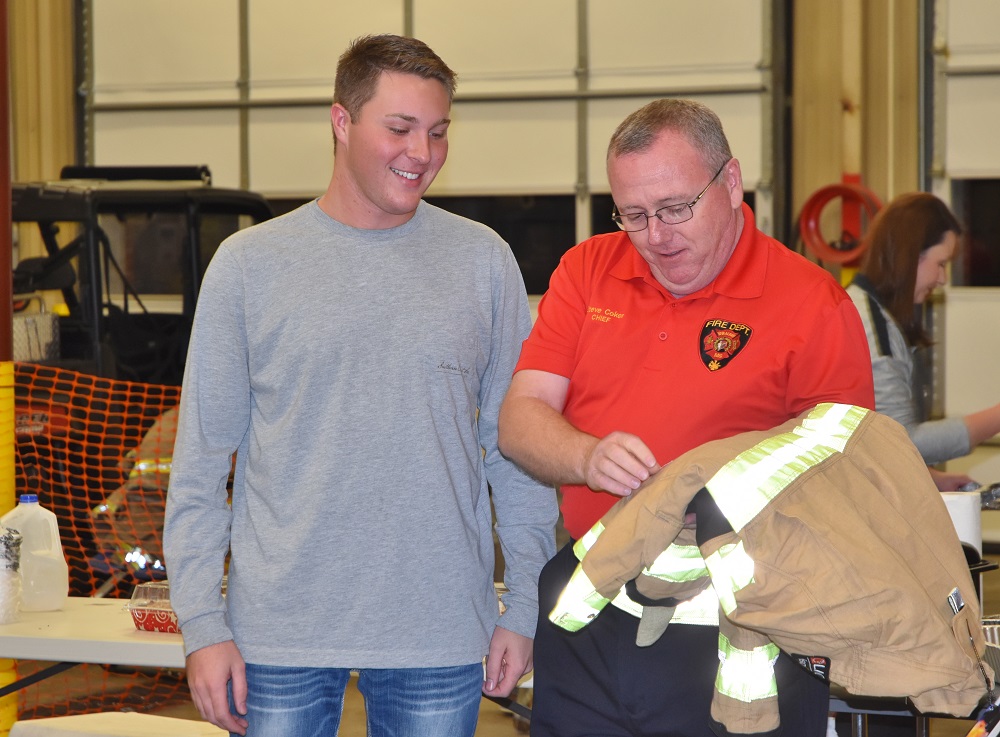 During this year’s Christmas Fellowship, there were some milestones celebrated also. David Williams, and Mark Sides, both Captains with the fire dept, reached their 20 year mark with the dept. That is 20 years of experience, dedication, and service to the citizens of both New Albany and Union County. Captain Mark Sides was also selected as the 2016 firefighter of the year by his peers. New fire fighter Luke Taylor was issued new turn out gear, having just completed 7 weeks at the Fire Academy in Pearl. Volunteer fire fighters were issued the signature red polo shirts that are now being worn out in public by the staff.
