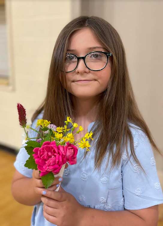 Kelly Coltharp, club associate member, Baileytown Farm owner, and author of MATERS MATTER FROM A to Z, discussed that May Day celebrates a season of new growth and is a time for people to gather together and celebrate with singing, dancing, and sharing baskets of flowers. Following the lesson, girls lined up with paper doilies rolled into cones and filled them with mint, red clover, jonquils, baby’s breath, and spirea.