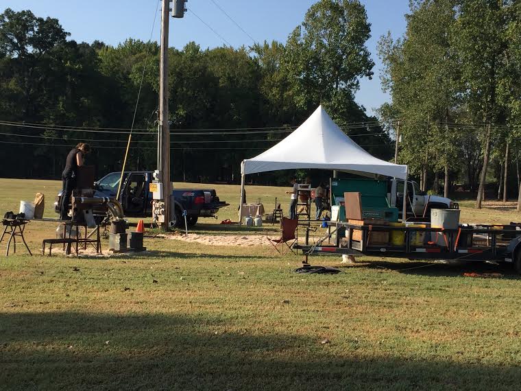 - Mid-morning, the folks from Alabama Art Casting began setting up their traveling foundry in preparation for Fire on the River. Gray iron melting started a little after noon, and pouring followed in a couple of hours. (More about Fire on the River in a later feature.)
