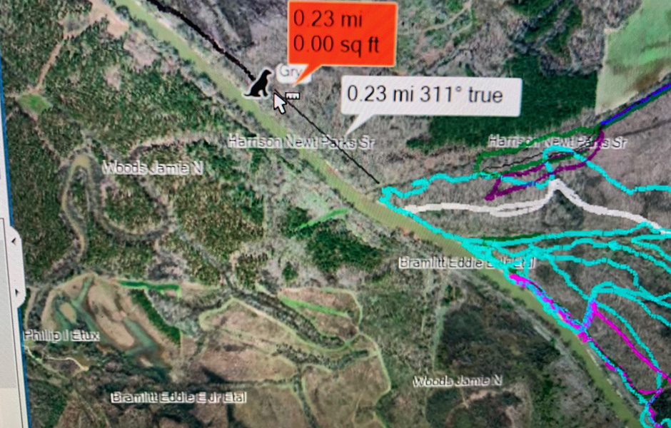 Begun as a means to keep up with hunting dogs, the system uses small transmitters that send signals to a receiver every two seconds and can be effective up to two miles. Where they go and have been shows up as a line path on a satellite map on computer screens, much in the same way a person’s timeline can been seen on Google Maps.