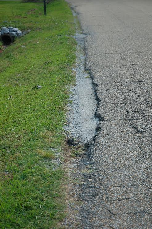 Yet Oxford Road is only 20 feet wide, even less in many places where the pavement has broken away, creating traffic safety problems. Pavement is crumbled away on both sides of the .6 mile stretch of road. In several instances more than a foot of pavement has disintegrated on the road edge. Several “pot holes” are more than two feet long.